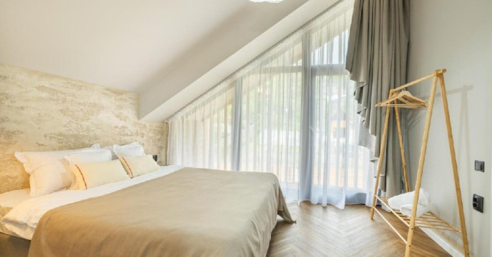 Dotari camere: True Cabin ofera un living spatios unde te poti relaxa langa semineu si care iti ofera o priveliste spectaculoasa catre padurea de langa cabana, 4 dormitoare duble cu baie proprie fiecare; capacitatea maxima este de 8 adulti + 2 copii. Unitatea de cazare este dotata cu climatizare, iar unele dormitoare au balcon.