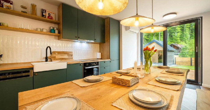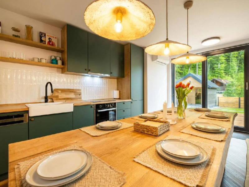 True Cabin este o alegere excelentÄ pentru cei care cautÄ cazare confortabilÄ Ã®n inima naturii. AceastÄ cabanÄ oferÄ o gamÄ variatÄ de amenajÄri, inclusiv o zonÄ de living Èi dining spaÈioasÄ, perfectÄ pentru relaxare. Cu 4 dormitoare dotate cu bÄi proprii, cabana poate gÄzdui confortabil pânÄ la 8 adulÈi Èi 2 copii. Printre facilitÄÈile disponibile se numÄrÄ jacuzzi cu hidromasaj, saunÄ, Èi o zonÄ exterioarÄ de BBQ, idealÄ pentru serile petrecute în aer liber. De asemenea, oaspeÈii pot beneficia de o grÄdinÄ cu terasÄ Èi acces gratuit la internet, asigurându-se astfel confortul necesar pentru o vacanÈÄ plÄcutÄ. Fiecare dormitor este dotat cu aer condiÈionat, iar unele dintre ele dispun de balcon, oferind o priveliÈte spectaculoasÄ cÄtre pÄdurea din apropiere. Livingul spaÈios, cu Èemineu, creeazÄ o atmosferÄ caldÄ Èi primitoare, perfectÄ pentru momentele de relaxare dupÄ o zi plinÄ de activitÄÈi. True Cabin este vândutÄ integral, ceea ce o face idealÄ pentru grupuri sau familii care doresc sÄ se bucure de intimitate Èi confort. Ãn apropierea cabanei, Lacul Ursu este o atracÈie popularÄ, unde vizitatorii pot explora frumuseÈea naturalÄ a zonei. De asemenea, Sovata oferÄ diverse activitÄÈi recreative, inclusiv drumeÈii Èi plimbÄri în naturÄ, fiind o destinaÈie perfectÄ pentru iubitorii de aventurÄ. Pentru mesele dumneavoastrÄ, atât bucÄtÄria interioarÄ, cât Èi cea exterioarÄ sunt complet dotate, permiÈându-vÄ sÄ pregÄtiÈi cele mai gustoase preparate. Indiferent dacÄ doriÈi sÄ savuraÈi o masÄ Ã®n interior sau sÄ vÄ bucuraÈi de aerul proaspÄt în grÄdinÄ, True Cabin oferÄ toate facilitÄÈile necesare pentru o experienÈÄ culinarÄ plÄcutÄ.