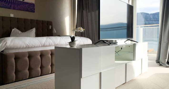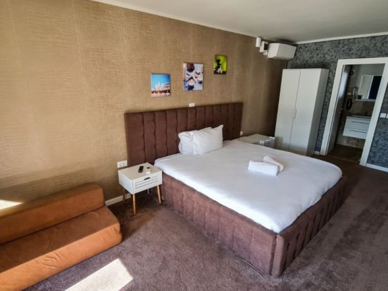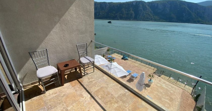 Dotari camere: Vella1,-camera dubla standard - cu o suprafata de 20 mp, are pat matrimonial, baie cu dus, AC, TV, uscator de par, mini-frigider, balcon cu masuta si scaune, vedere panoramica spre Dunare si munti. Poate acomoda maxim 2 adulti.