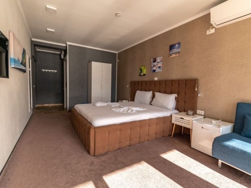 Vella1. - camera dubla deluxe - cu o suprafata de 26 mp, sunt spatioase si dotate cu TV, minifrigider , internet, baie cu cabinade dus, uscator de par, pat matrimonial de dimensiune king. Camerele au balcon cu spatiu pentru relaxare, scaune si masuta.Poate acomoda maxim 2 adulti. Vella 1 Family cu o suprafata de 40 mp, au TV, minifrigider, internet, AC, baie cu cabina de dus , uscator de par, balcon cu mobilier. Acest tip de camera acomodeaza 2 adulti si 2 copii fiind prevazuta cu canapea extensibila.