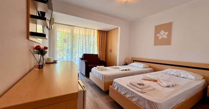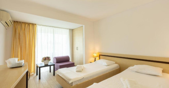 Localizare: Pozitionat in centrul statiunii, intre hotelul ,,Iaki' si hotelul ,,Riviera', hotelul ,,Venus' este situat la doar 20 m de plaja. Descriere: Amplasarea acestui hotel, chiar in centrul statiunii, in apropierea plajei, va poate oferi chiar de la prima vedere tot ceea ce ati astepta de la o vacanta pe litoral. Aici puteti sa va bucurati de confort si relaxare la malul marii , indiferent daca sunteti alaturi de familie, prieteni sau singuri. Hotel Venus Mamaia detine plaja proprie (Plaja Mojito) si ofera turistilor sai acces gratuit cu 2 sezlonguri asigurate pentru fiecare camera ocupata. Toate camerele hotelului Venus Mamaia au fost renovate complet in anii 2016-2017. In prezent ofera camere cu mobilier nou si dotate cu televizor, minibar, aer conditionat. Pentru servirea meselor, Hotel Venus are un restaurant tip autoservire, cu o capacitate de 300 de locuri si terasa in aer liber. In zonele publice ale hotelului a restaurant, receptie a exista retea wireless gratuita.