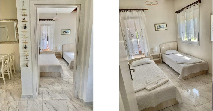 Apartment 3 parter Dormitor, bucatarie. Dormitor - 2 paturi de o persoana. In living/bucatarie sunt 2 paturi de o persoana. Capacitate cazare - pana la 4 adulti. Apartment 4 parter Apartament spatios, living cu bucatarie, dormitor separat. In dormitor - pat dublu. Living - canapea ,2 paturi de o persoana si 2 paturi extensibile de o persoana. Capacitate cazare - pana la 6 adulti.