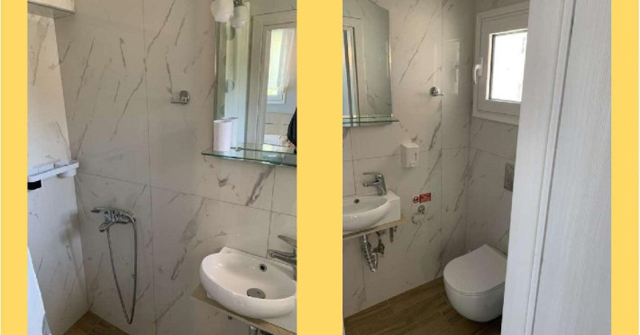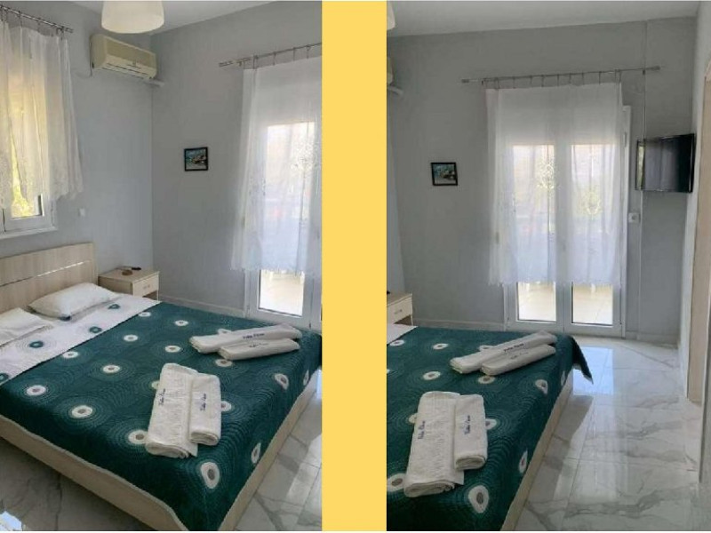 Facilitati camere: Toate apartamentele au bucatarie complet echipata (frigider, cuptor, plita electrica) TV, AC, WiFi, uscator de par, calcator, baie cu dus si veranda.