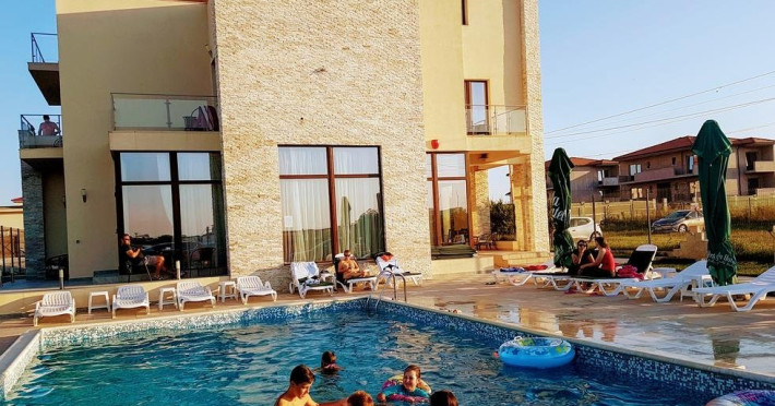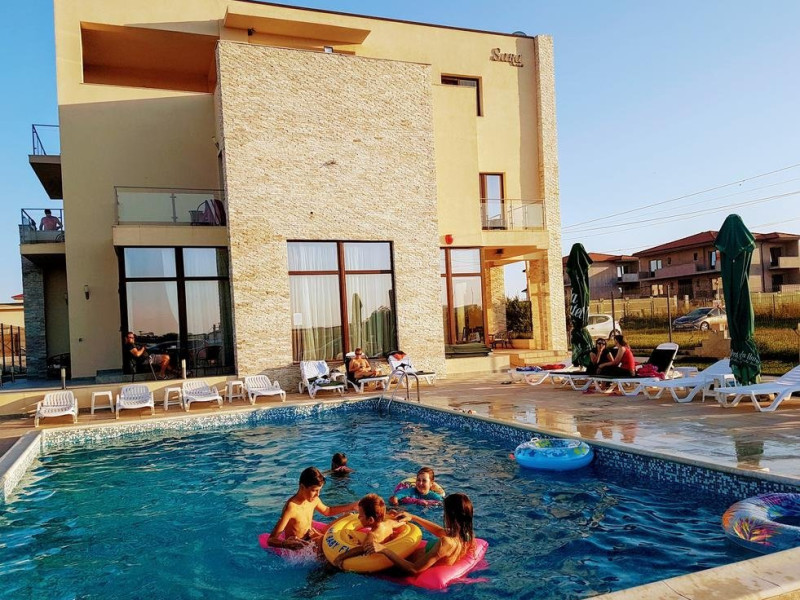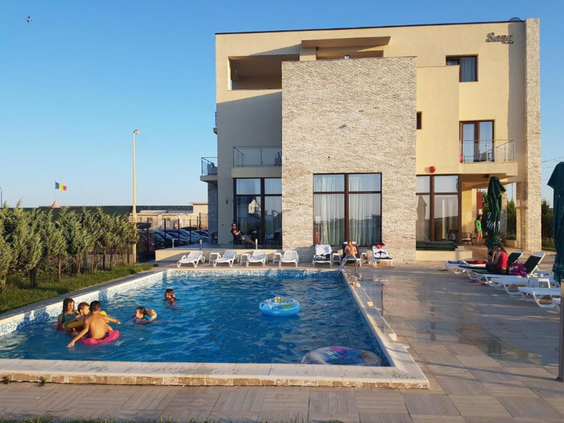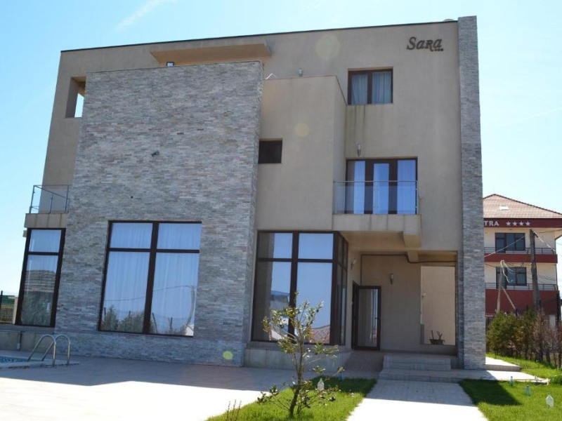 Conditii de cazare Vila Sara are o capacitate de 12 camere duble. Camerele sunt dotate cu pat matrimonial, baie proprie, Tv Lcd, Wi-Fi, minibar. Cmerele pot fi situate atat la parter cat si la etaj. Unele camere au vedere la mare. Servicii si FacilitatiSalon de mic dejunZona de relaxarePiscinaGradinaInternetParcare in incintaLoc de joaca pentru copii