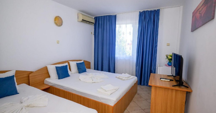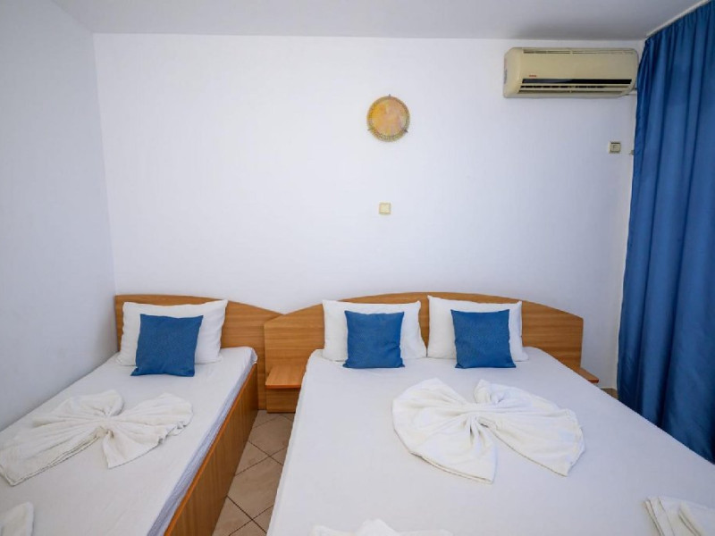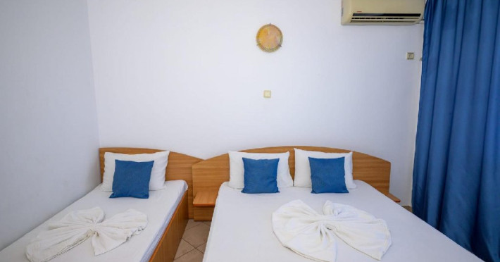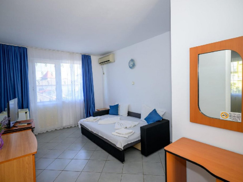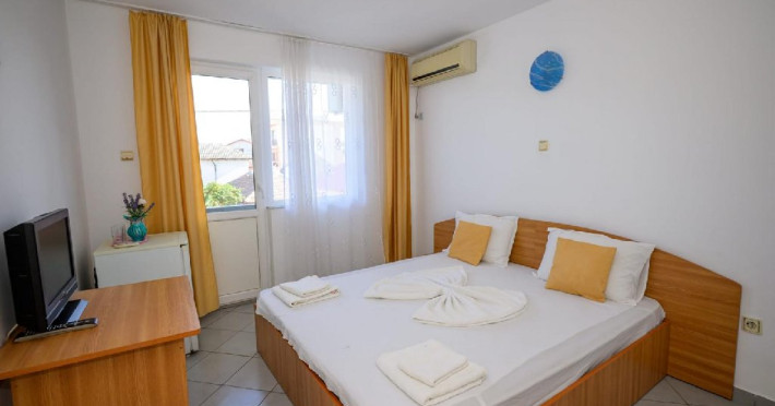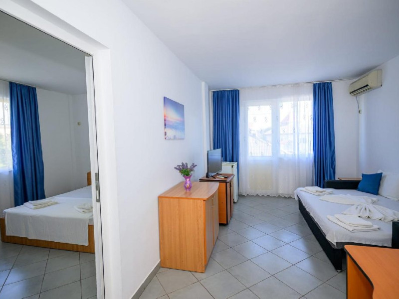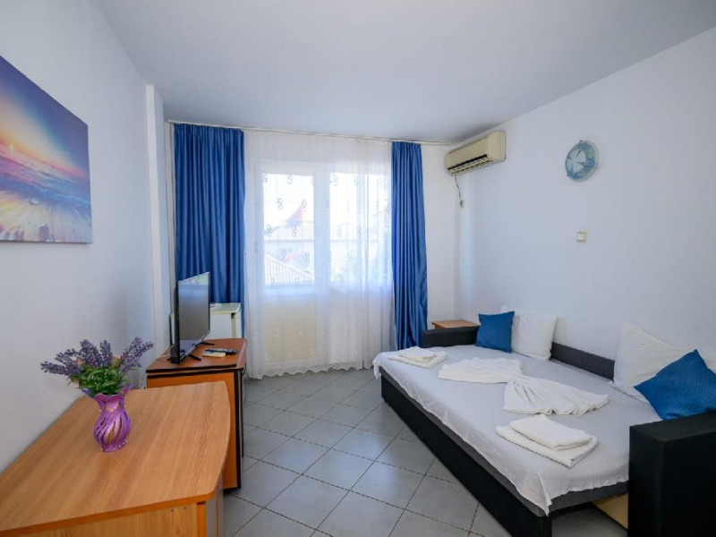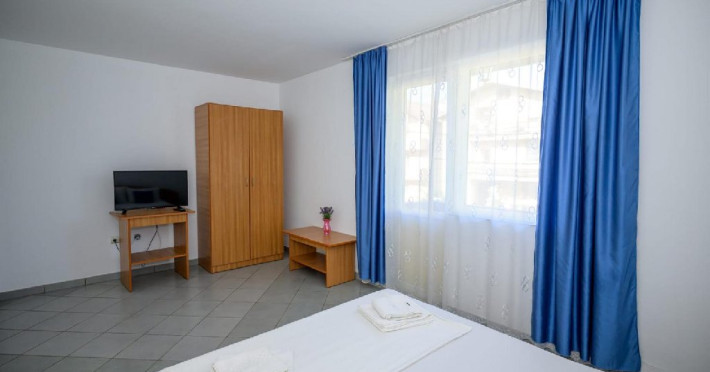 Este aproape de plaja, la 5-10 minute de mers pe jos si aproape de centrele de tratament. Ideala pentru familii, dispune de aer conditionat, TV, WiFi, frigider, balcon, chicineta, gratar, parcare.