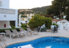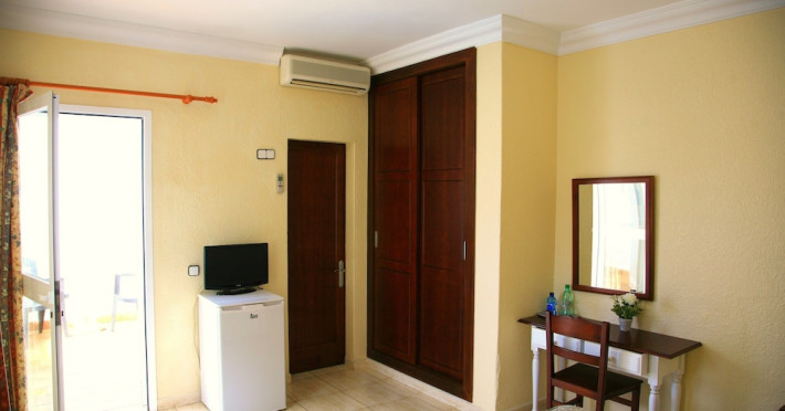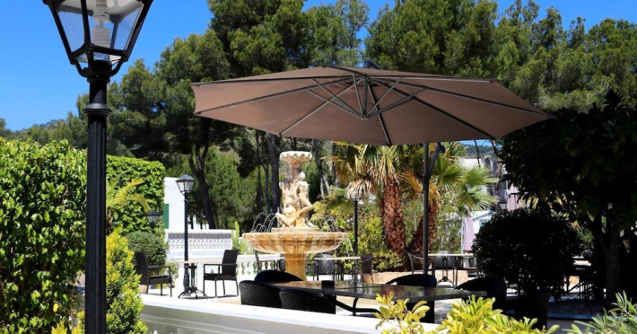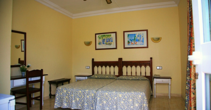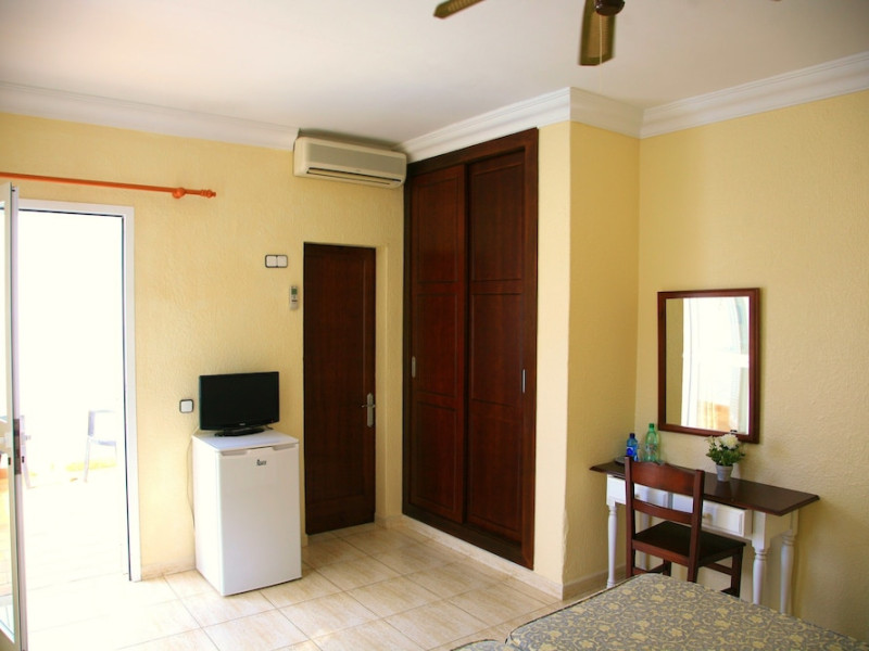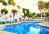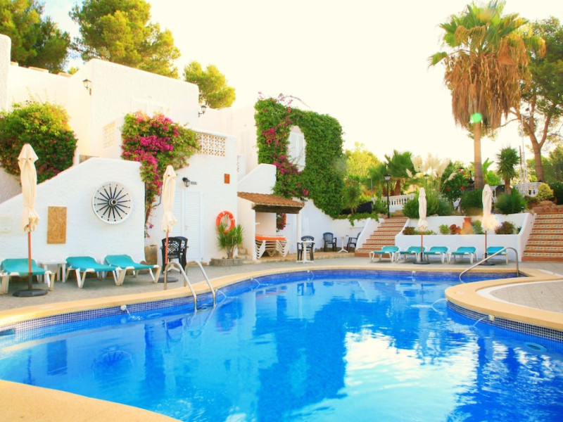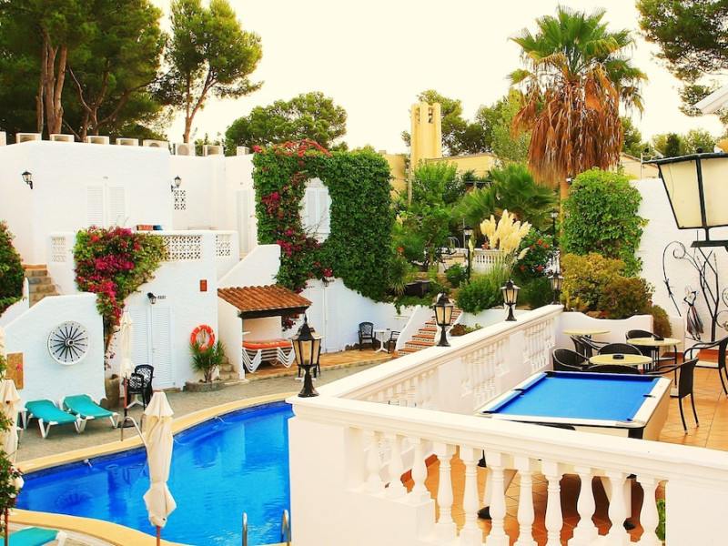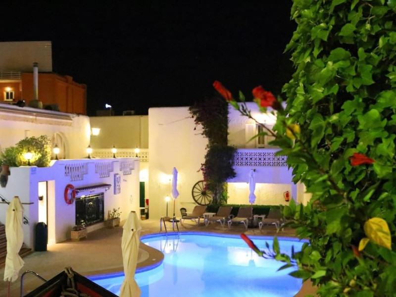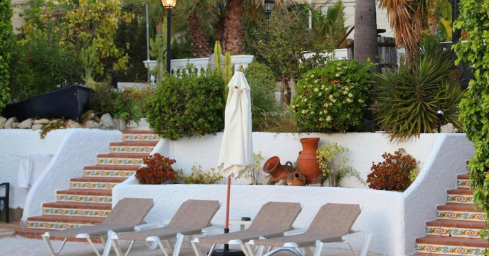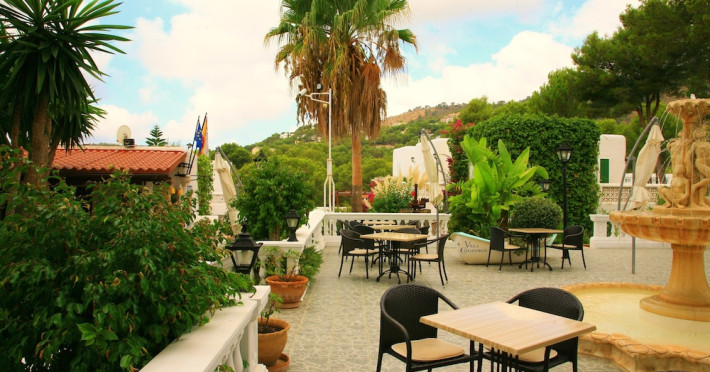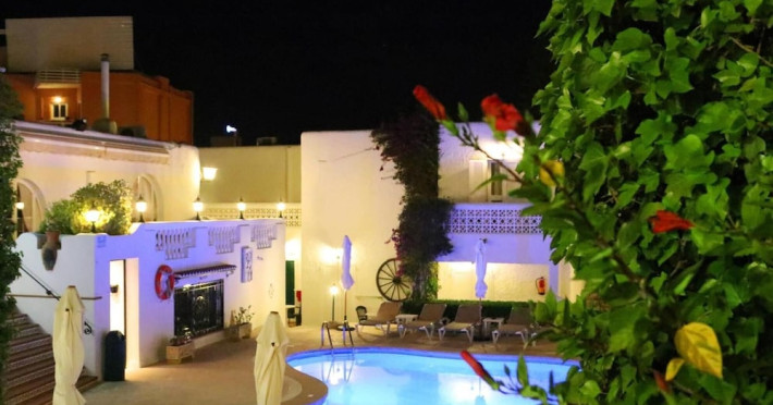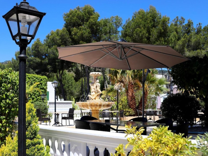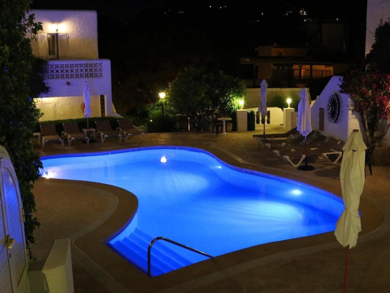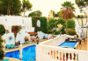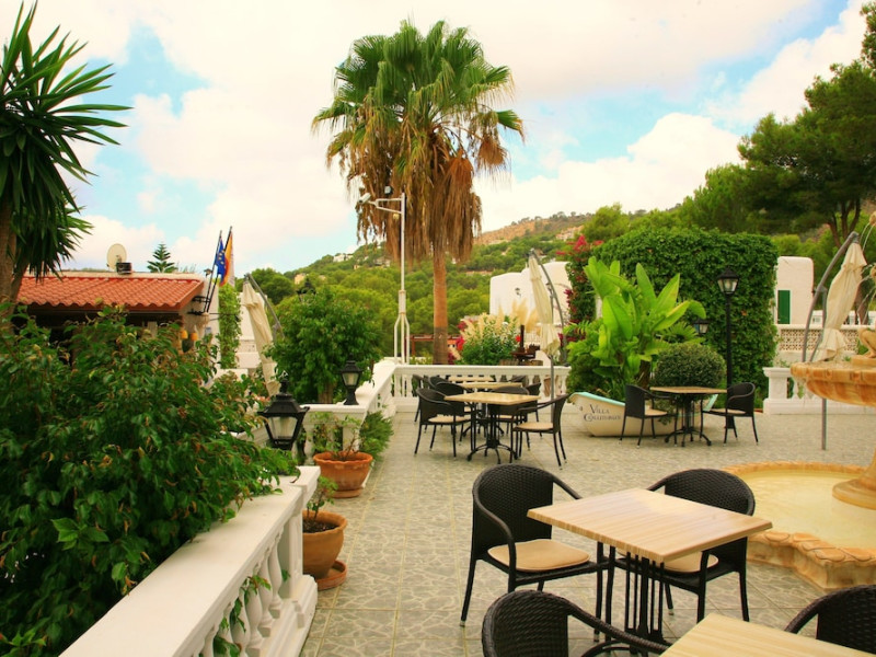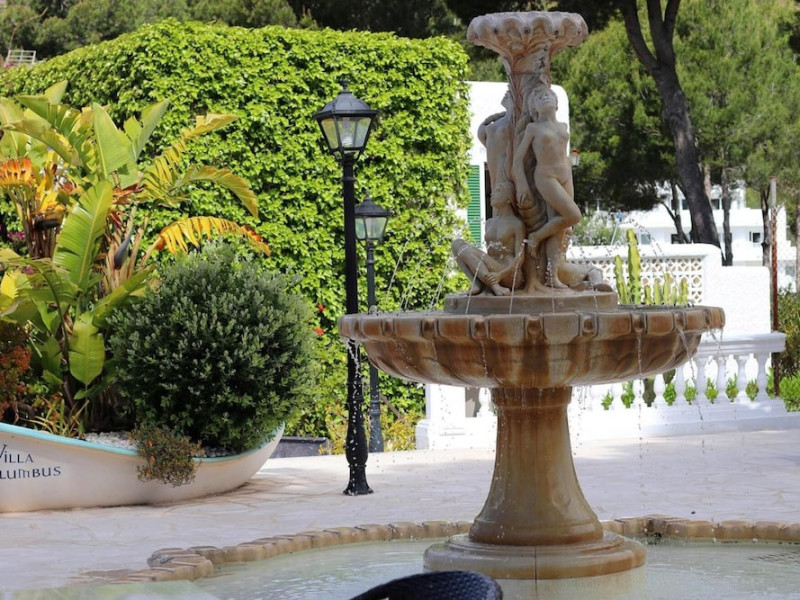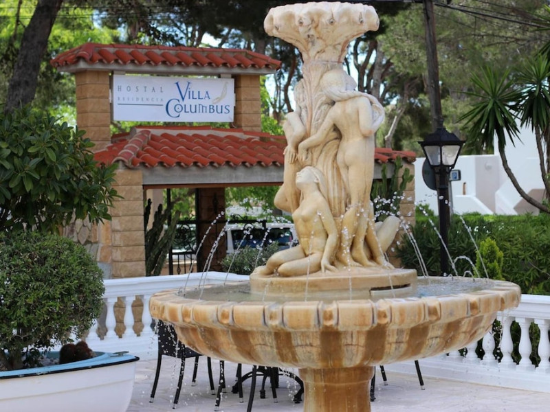 Villa Columbus, a charming 2-star family-run place, is located in the seaside resort of Peguera, 35 km from Palma airport and 100 meters from a beautiful sandy beach. It comprises three villas, offering 30 individually accessible rooms. Upper-floor rooms feature terraces, while ground-floor rooms boast patios or direct access to the pool area. Amenities include Wi-Fi in public areas, and all rooms are equipped with a shower, TV, safe and fridge (fridge is optional with an extra charge). A hearty buffet breakfast is included and served in the restaurant or on the lovely outdoor terrace amidst gardens and a fountain. Guests can relax in the sun or under a pergola in the solarium. The restaurant also offers à la carte lunch and dinner, including themed dinners. Please note: Check-in is from 200 PM to 11:30 PM. For arrivals outside these hours, please contact the hotel in advance to arrange a late check-in. A late check-in fee of â¬50 applies.