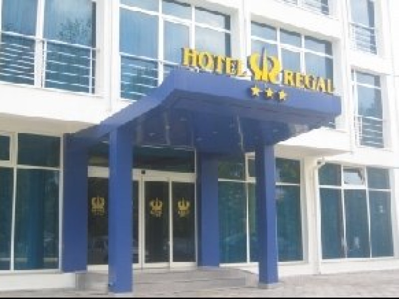 LOCALIZARESituat pe malul lacului Siutghiol, in zona prezindentiala a statiunii.STRUCTURA DE CAZARECamere duble: 14 camere cu pat matrimonial si 12 camere cu 2 paturi ; sunt dotate cu: tv cablu, telefon international, minibar, aer conditionat, cabina cu dus cu hidromasaj, seif pentru valori ( fara alte taxe ).FACILITATI SI SERVICIIHotelul Regal este un hotel modern de 3 stele, cu camere confortabile si elegante, inaugurat in 2006. Facilitati pentru afaceri: sala de conferinte, dineuri, coffe-break-uri, etc. Se asigura parcare pazita – gratuit. La parter se afla un restaurant cu bucatarie romaneasca si internationala. Masa se serveste pe baza de fisa cont turist. Tot la parter se afla un Salon pentru mic dejun , bufet suedez.