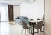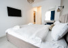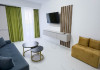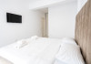 Apartament cu 2 camere, fara vedere la mare Apartamentele de acest tip au 2 camere (dormitor cu pat matrimonial si living cu canapea extensibila). Capacitate maxima: 4 persoane. Dotari si facilitati: bucatarie de tip open space, complet mobilata si utilata (frigider, plita cu inductie sau pe gaz, cuptor cu microunde, espressor de cafea cu cafea boabe/ capsule, vesela, tacamuri). Toate apartamentele au aer conditionat, TV LED cu conexiune cablu TV, acces Internet Wi-Fi gratuit, suport uscator de rufe, masa de calcat si fier de calcat, uscator de par, mobilier pe balcoane/ terase.