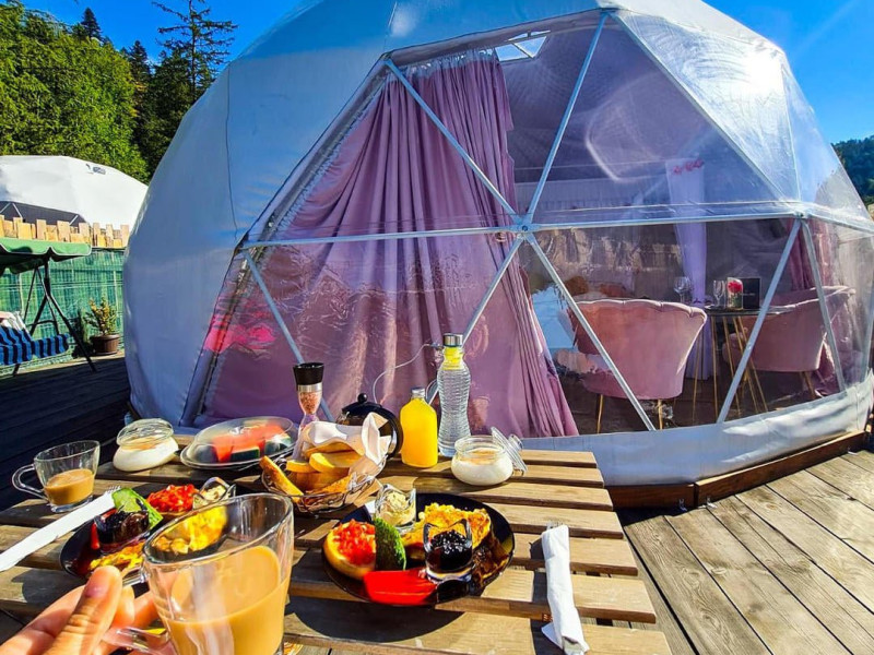 Conceptul de glamping a reinventat campingul traditional, prin faptul ca ne permite reconectarea cu natura fara a ne priva de lucrurile esentiale vietii de zi cu zi. Posibilitatea de a dormi sub stele nu a fost niciodata atat de atragatoare cum este la Wegloo, unde regula suprema este armonia intre comfort si relaxare in mijlocul naturii.Unic in Romania, Wegloo este un dom geodezic, creat sa ofere comfort si intimitate. Wegloo duce conceptul de glamping la urmatorul nivel si ne permite sa descoperim o noua experienta unde natura este luxul suprem.Experienta ta de glamping are loc in judetul Prahova, direct sub cerul albastru, intr-o zona la marginea padurii, inconjurata de munti.Fie ca iti doresti o escapada romantica sau o mini vacanta departe de treburile cotidiene, Wegloo iti ofera posibilitatea de a te bucura de serenitate si de a te relaxa. Este ideal atat pentru cupluri, familii cu copii, cat si pentru oamenii care au nevoie de timp cu ei insisi pentru a se reconecta la energia naturii sau pentru a medita.Vino la Wegloo si descopera frumusetea muntilor din interioul propriului tau igloo. Nu trebuie decat sa te relaxezi si sa te bucuri de privelistea feerica!P.S. Nu uita sa privesti catre stele si sa observi cum stralucesc pentru tine!
