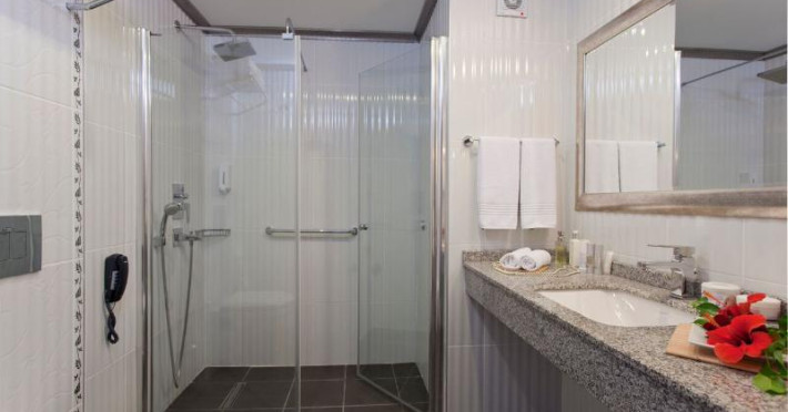 The resort welcomes guests in a 5-storey building with a lift and 96 rooms. English- and German-speaking staff at the reception desk in the lobby are ready to assist you with check-in and check-out. Amenities include a cloakroom, baggage storage service, safe and currency exchange service. Wireless internet access (no extra charge) allows guests to stay connected while on holiday. The tour desk offers assistance with booking excursions. The resort has a range of facilities for guests with disabilities. Wheelchair-accessible facilities are available. A number of shops, including a supermarket, are great for shopping or just browsing. The grounds of the resort feature a playground and a lovely garden. Additional amenities include a newspaper stand, a TV room and a library. Guests arriving by car can park their vehicles in the garage (no extra charge) or in the car park. Further services and facilities include a car hire service, medical assistance, a transfer service, 24-hour room service (for a fee), an alarm call service, a laundry service, a hairdresser and a hotel shuttle bus. Travellers with bicycles can make use of the on-site bicycle storage area. A fax machine is available for guests business needs.